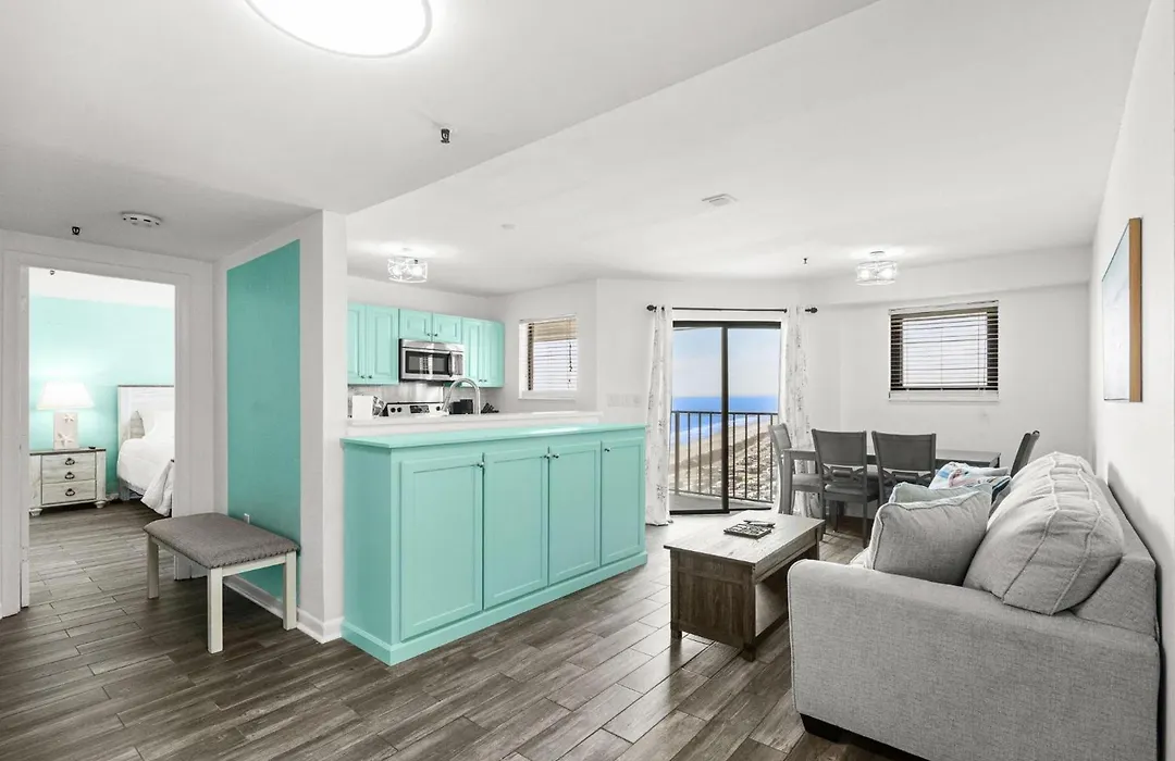 Myrtle Beach Resort T1614 villa houses a fully furnished kitchen with a dishwasher.